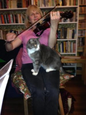 This is Otto who was the session cat for several years. Sadly he died in June 2014. He was Ian King's cat and always came into the sessions and really did seem to enjoy the music. Here he is appreciating Di's playing.